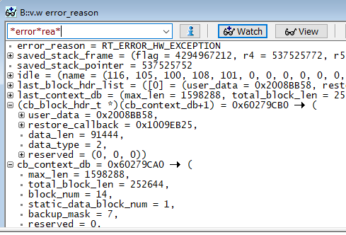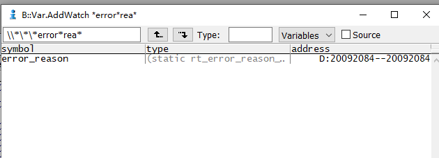 变量窗口支持通配符,例如输入*error*rea*并回车,会提示error_reason,双击可选择变量假如watch窗口