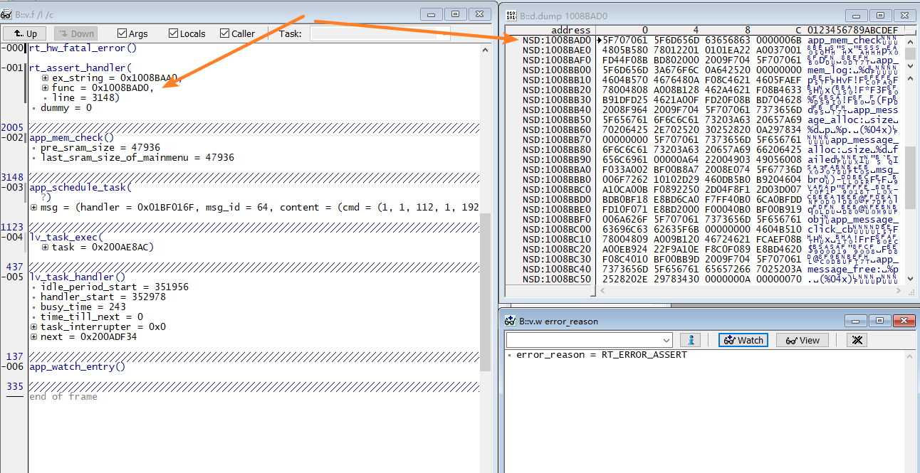 对于ASSERT类型的死机,可以从打印大致知道问题发生的位置,但对于hardfault死机或者比较复杂的死机,这些信息就不够了,需要借助工具获取更多线索。一个方法是使用调试器attach上被测设备, 查看全局变量和memory(如果是hardfault,attach上之后需要用打印出来的SP/LR/PC改写当前的寄存器,就能看到函数调用栈了,如果是ASSERT,不需要修改寄存器也能看到函数调用栈), 但这样就会占用了被测设备,也不利于多人一起分析。SDK提供的crash_dump_analyser工具可以保存和恢复问题现场,开发人员在PC上也可以分析问题,而不需要连上目标设备。 所需的工具有: