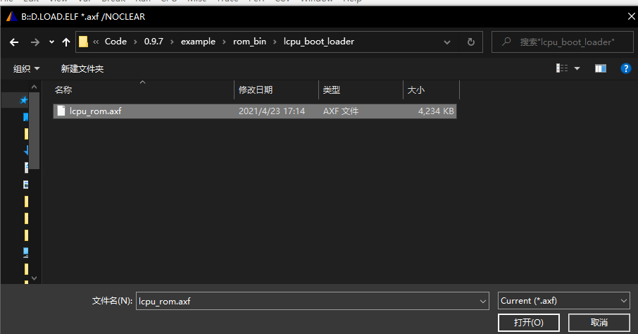 第二个axf选择lcpu_rom.axf,该文件在sdk的example/rom_bin/lcpu_boot_loader目录下