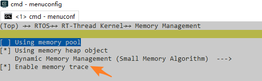 SDK集成了一些工具用于分析由assert或hardfault引起的死机问题,为了便于分析内存泄漏,需要打开RTOS->RT-Thread Kernel->Memory Management中的Enable memory trace