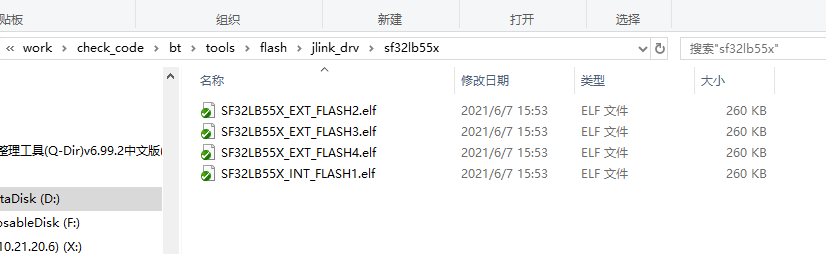 - 将SifliSDK\tools\flash\jlink_drv\sf32lb55x 下的elf文件拷贝到前面新建的SiFli目录(每个elf对应一个flash的烧写驱动)