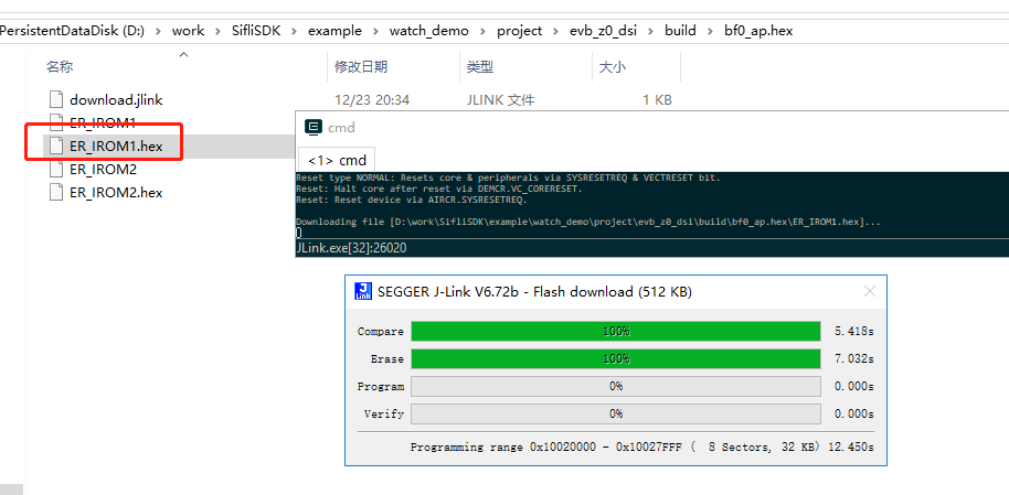 - 56和58系列工程,编译完后在build目录下会生成download.bat和download.jlink文件,运行download.bat就可以下载,不要用鼠标右键模式下载hex文件。如果点了,会更改download.jlink文件内容导致下载失败,请删除被更改的download.jlink文件,并重新编译用download.bat下载。