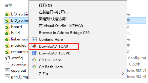- 右键目录烧写,将会把目录内的文件改为.hex后缀,并逐个烧写