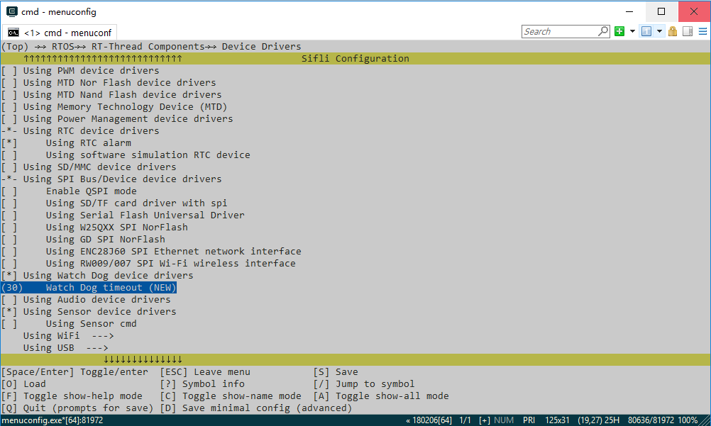 如果需要修改看门狗的超时时间,需要在menuconfig中做如下相应的配置: